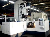 ? ? 主減速器殼三軸鏜孔車端面機床,本機床是為粗加工、半精加工主減速器殼三孔及車削主減速器殼主錐端面而設(shè)計的專用機床。本機床采用立臥復(fù)合式三面結(jié)構(gòu),左右端各布滑臺和鏜頭,用于兩端孔的加工。立頭采用西德標(biāo)準(zhǔn)的DSS系列雙向刀盤鏜車頭,用于主錐端面孔加工,鏜車頭主電機采用變頻調(diào)速,以滿足鏜大小孔時切削速度的變化。中間采用數(shù)控滑臺,滑臺上安裝液壓夾具,以適應(yīng)不同品種的偏置距。